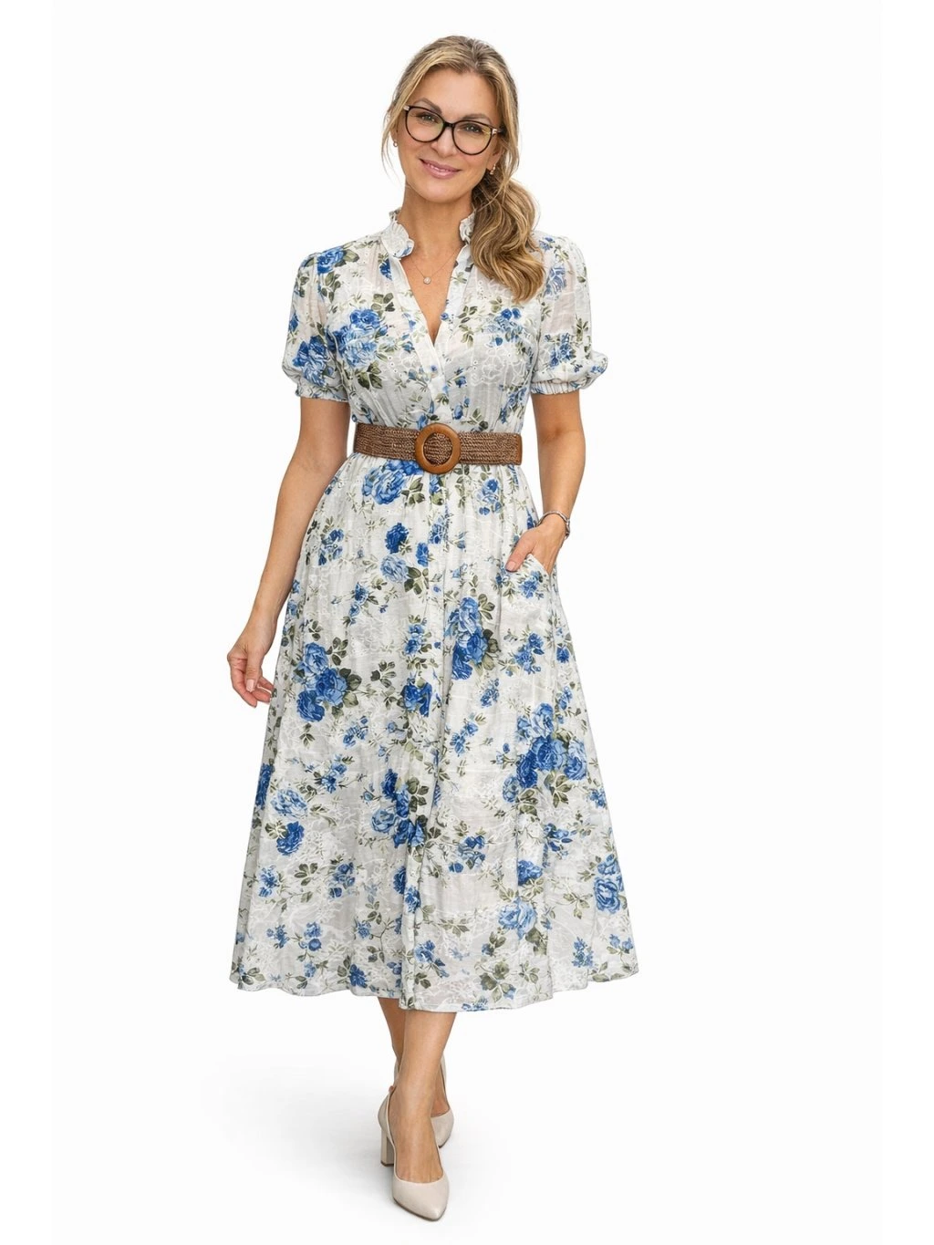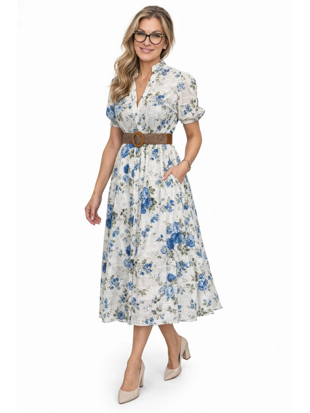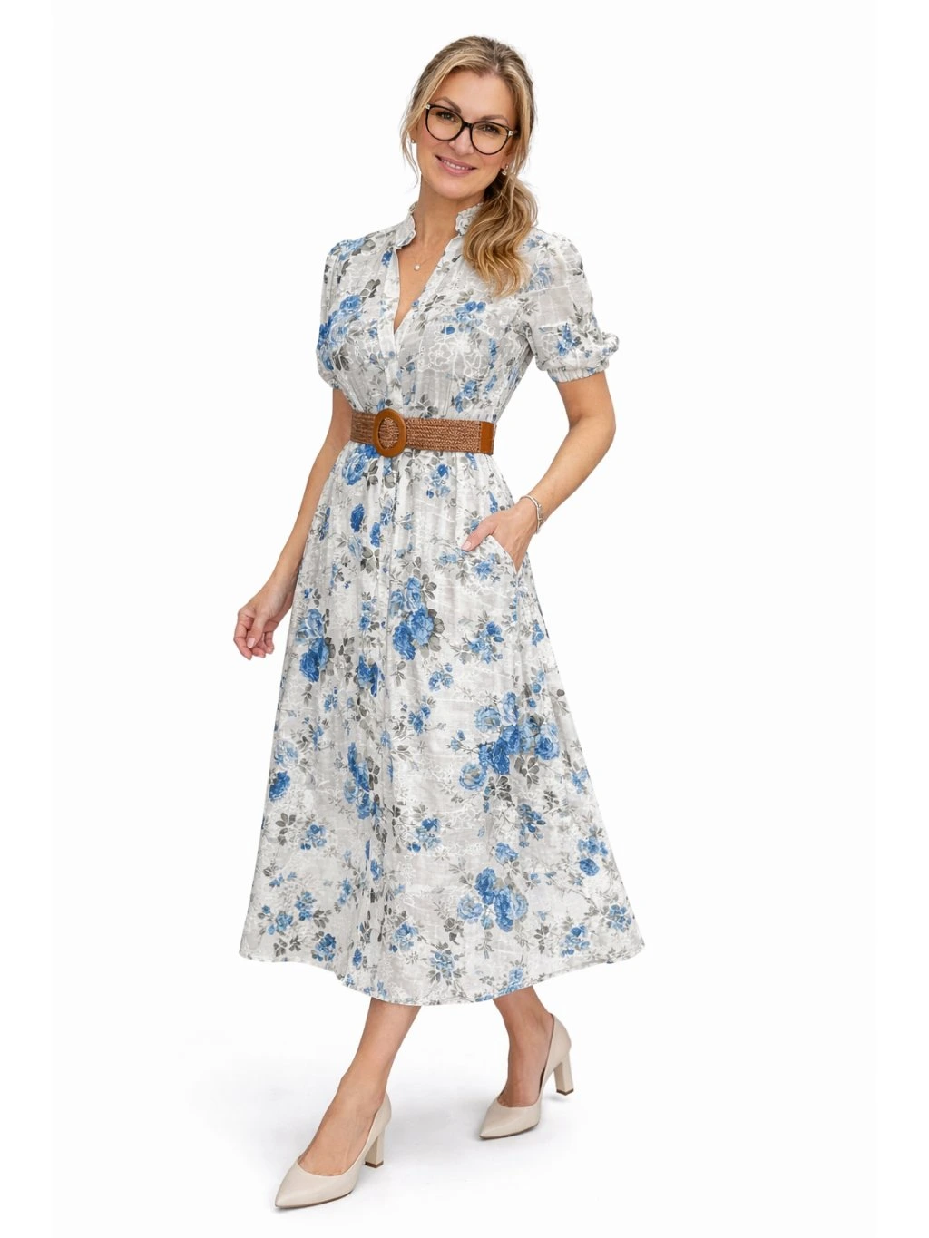 Romantické midi šaty s jemným květinovým vzorem jsou ideální volbou pro každodenní nošení i speciální příležitosti. Lehký, vzdušný materiál krásně splývá a spolu s áčkovou sukní lichotí postavě.